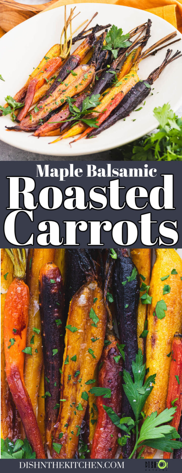 Maple Balsamic Roasted Carrots are the perfect side dish for any dinner. Simply toss them with a tasty vinaigrette, then roast them to tender caramelized perfection in your oven.